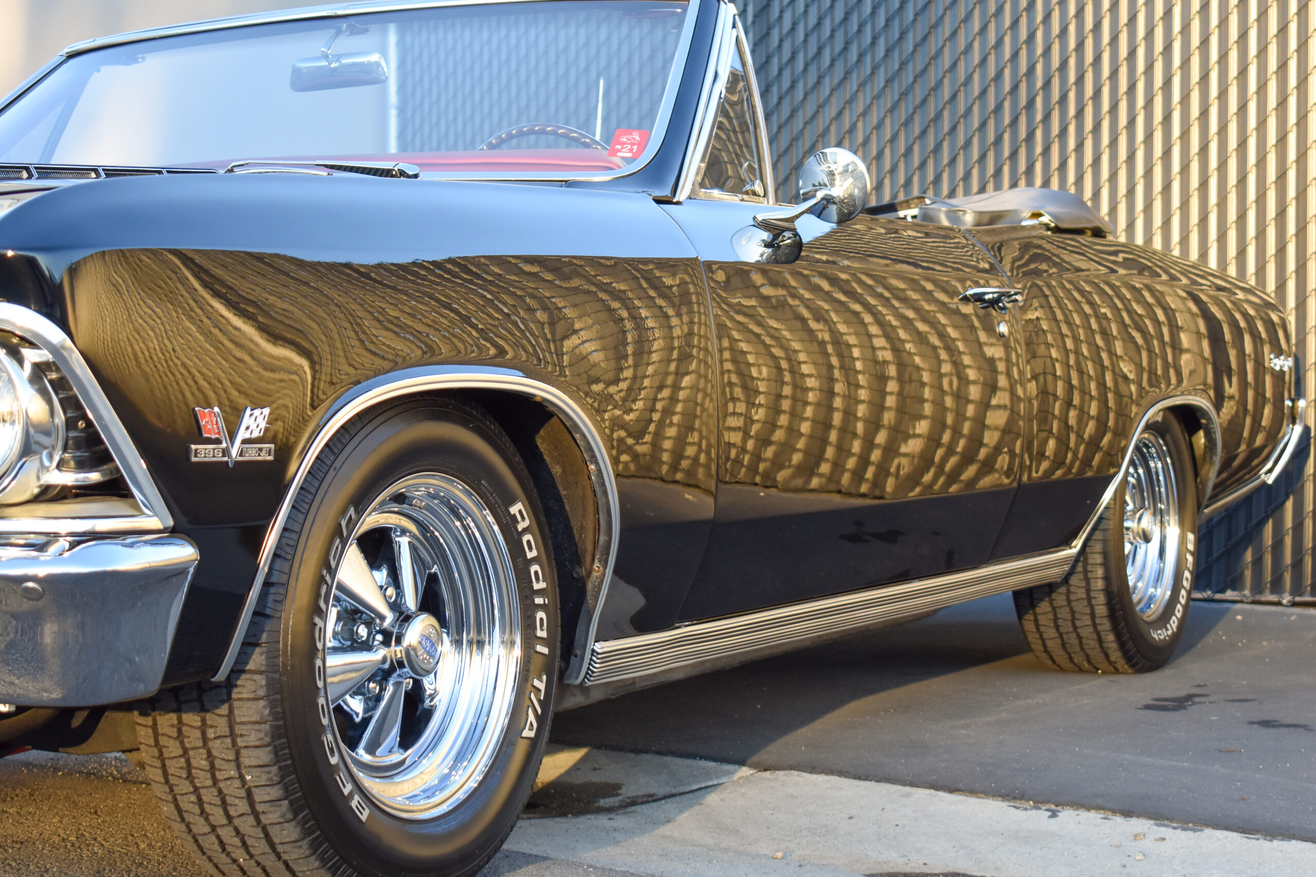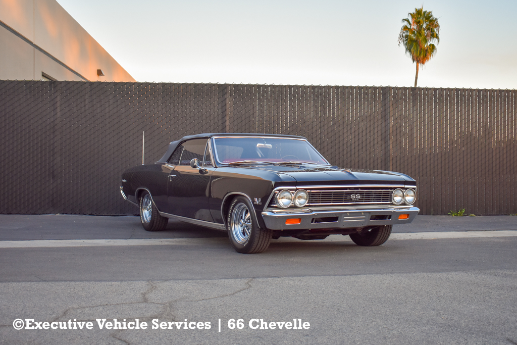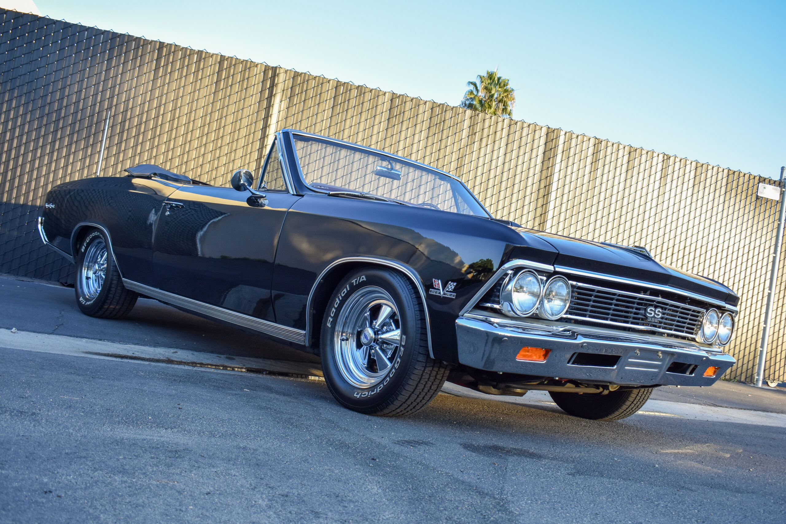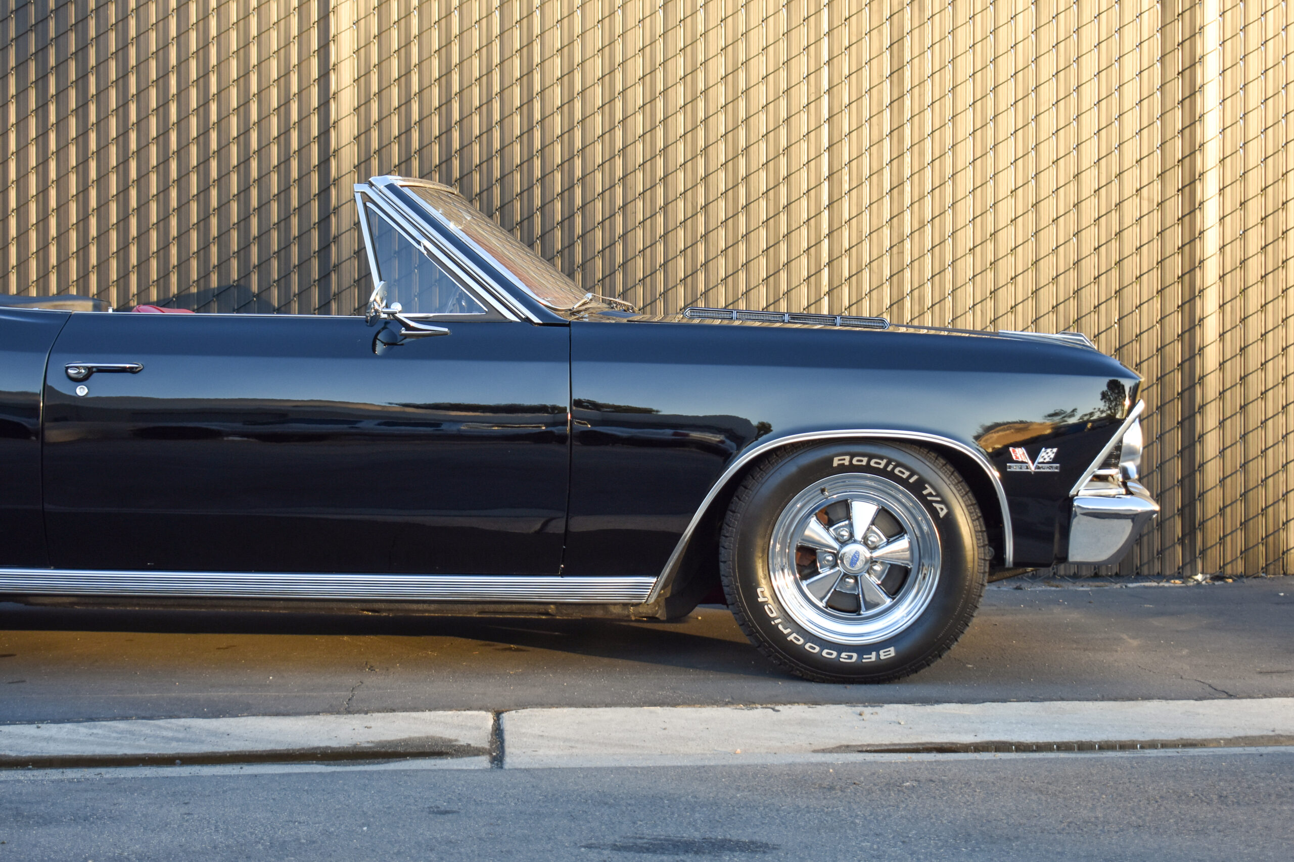 This incredible 1966 Chevrolet Chevelle SS Convertible currently resides in Costa Mesa, CA. A true SS 138 Vin number car that has received a full restoration from the previous owner. Painted in non-metallic Jet Black exterior is well complimented with its Red vinyl interior. It is powered by a GM 454ci HO V8 Crate Engine from 2019 with a Holley 4150 4-Barrel Carburetor producing 438 Horsepower. It is equipped with dual Thrush Mufflers giving it that amazing American V8 rumble! All that power is sent to a Muncie 4-Speed Manual Transmission and a 10-Bolt Rear end with 3.07:1 Gears. The Chevelle is equipped with Power Steering and Power brakes which includes Disc Brakes in the front and Drum in the rear. It has been configured with Factory Front Bucket seats and has had seat belts that match the interior added. The interior has red seats, carpet, panels, and dash. It still maintains all the factory gauges. To compliment the dash, it has the GM 2-spoke steering wheel and the Knee-Knocker Tachometer. The Center Console has a storage compartment and its factory clock. During its restoration from the previous owner, it received a new gas tank, fuel and brake lines, complete drivetrain, steering components, front suspension components, 4-link rear suspension, and a new exhaust system. It has 15″ Crager S/S wheels and BFG White Label Tires. The Odometer displays 3,635 miles on the 5 digit odometer and is mileage exempt.