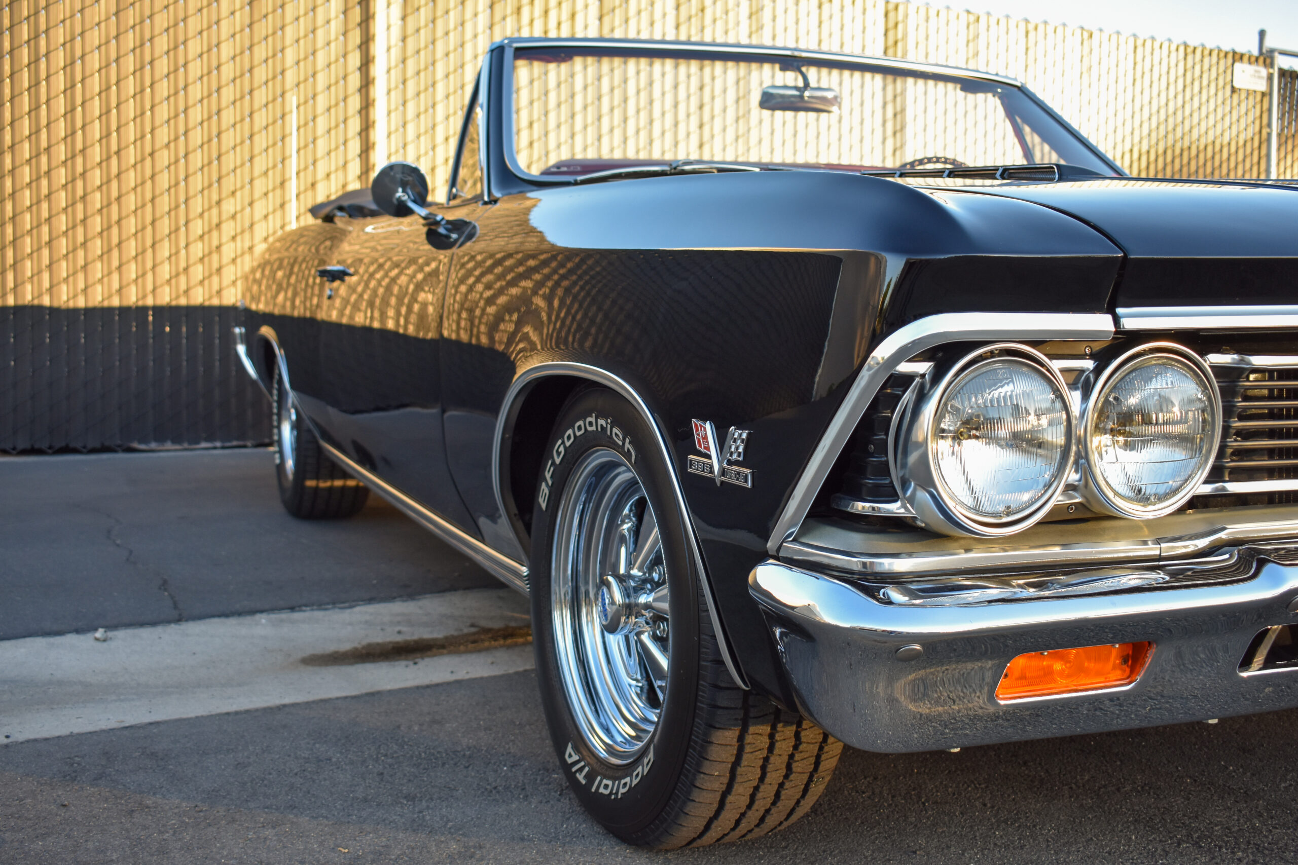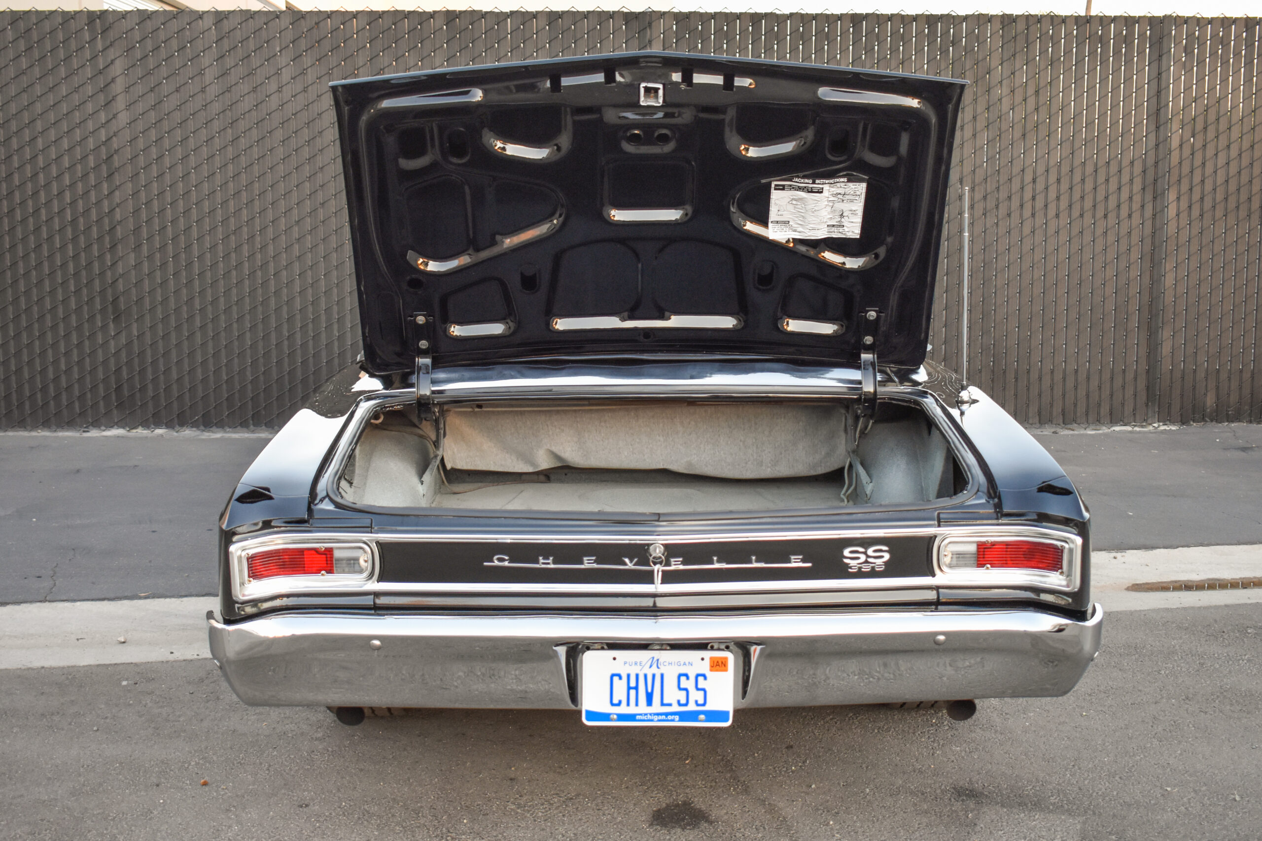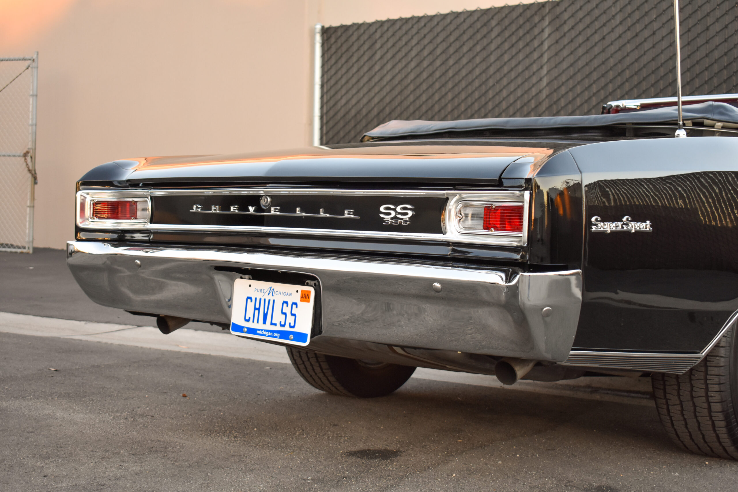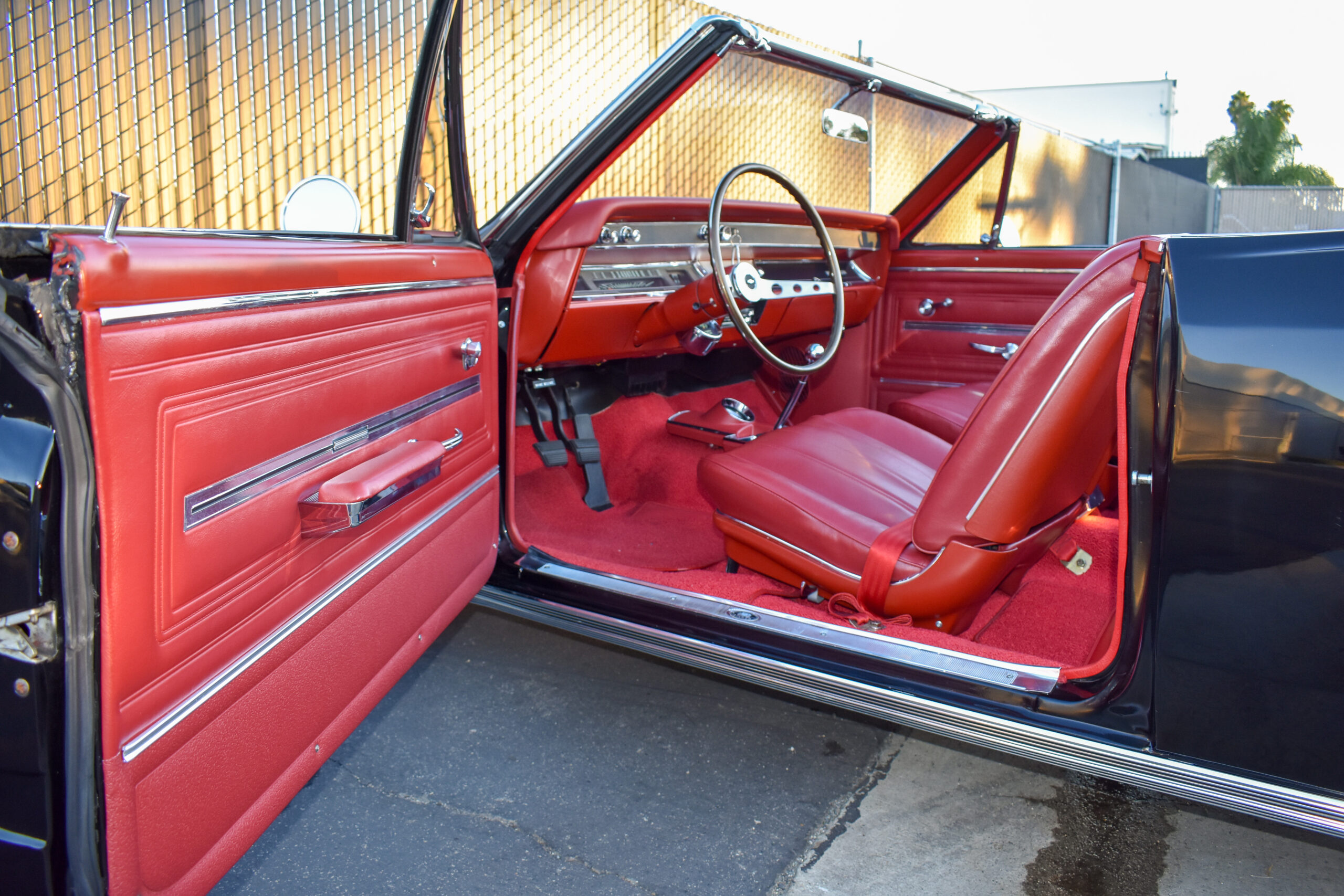 This incredible 1966 Chevrolet Chevelle SS Convertible currently resides in Costa Mesa, CA. A true SS 138 Vin number car that has received a full restoration from the previous owner. Painted in non-metallic Jet Black exterior is well complimented with its Red vinyl interior. It is powered by a GM 454ci HO V8 Crate Engine from 2019 with a Holley 4150 4-Barrel Carburetor producing 438 Horsepower. It is equipped with dual Thrush Mufflers giving it that amazing American V8 rumble! All that power is sent to a Muncie 4-Speed Manual Transmission and a 10-Bolt Rear end with 3.07:1 Gears. The Chevelle is equipped with Power Steering and Power brakes which includes Disc Brakes in the front and Drum in the rear. It has been configured with Factory Front Bucket seats and has had seat belts that match the interior added. The interior has red seats, carpet, panels, and dash. It still maintains all the factory gauges. To compliment the dash, it has the GM 2-spoke steering wheel and the Knee-Knocker Tachometer. The Center Console has a storage compartment and its factory clock. During its restoration from the previous owner, it received a new gas tank, fuel and brake lines, complete drivetrain, steering components, front suspension components, 4-link rear suspension, and a new exhaust system. It has 15″ Crager S/S wheels and BFG White Label Tires. The Odometer displays 3,635 miles on the 5 digit odometer and is mileage exempt.