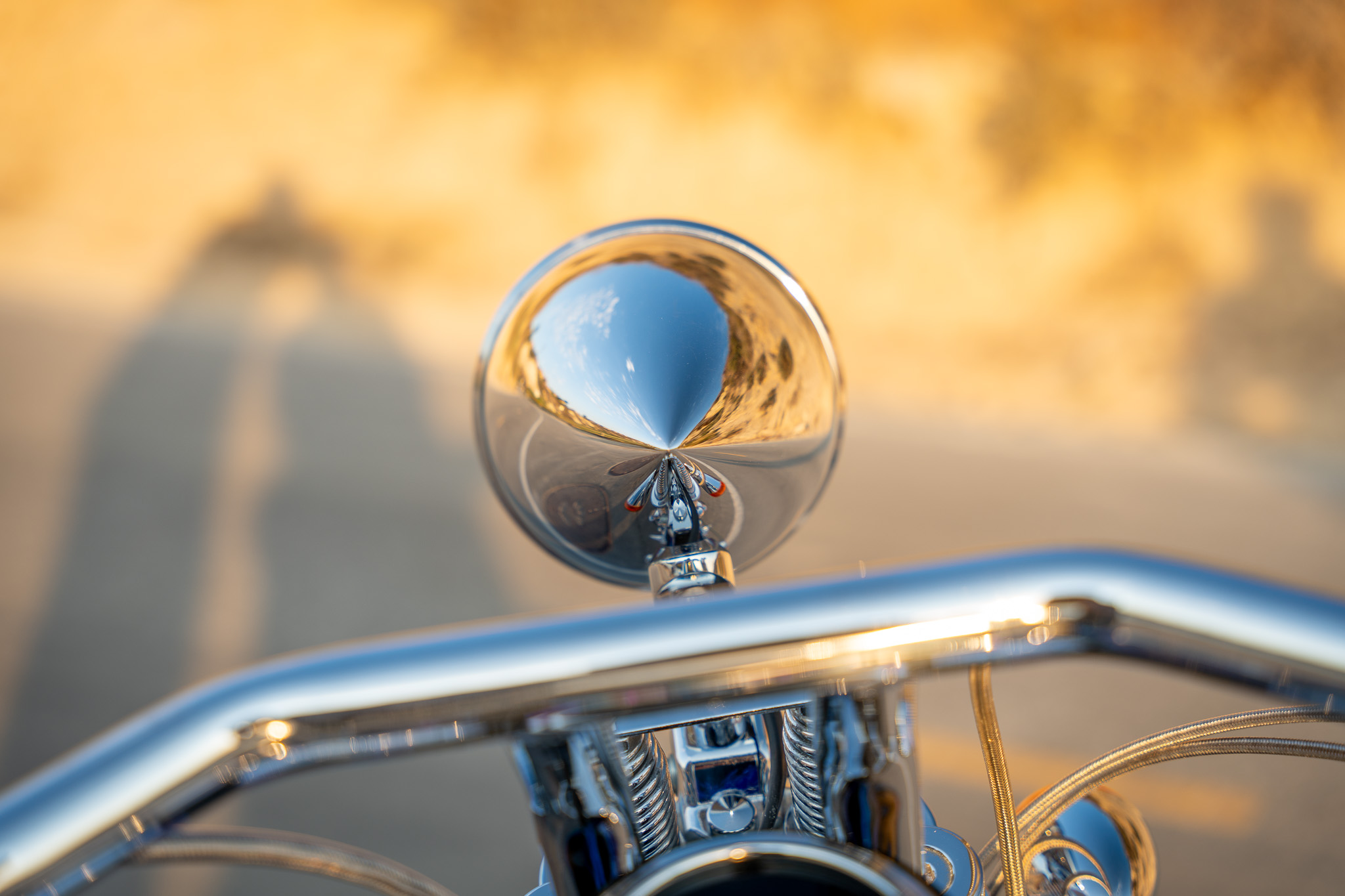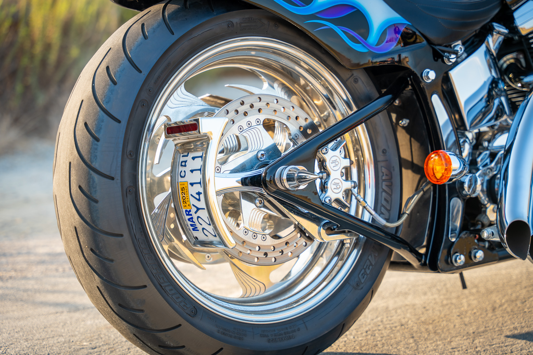 A View of the PM Front Brake upgrade, Corbin Seat, Custom Rear Fender and Tail Light, as well as the Custom Front Frame Cover that is paint Matched.