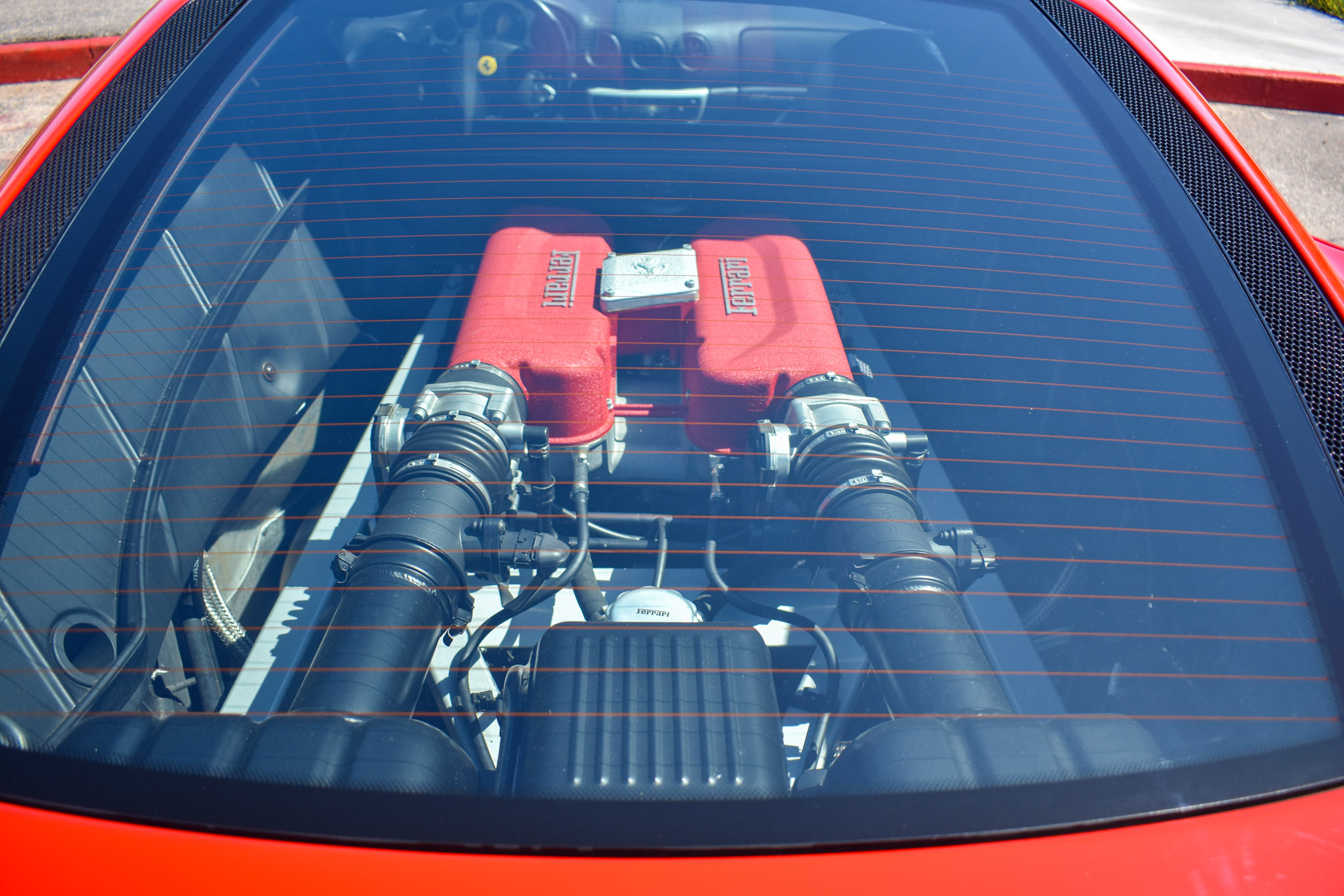 Mid-Mounted naturally aspirated Tipo F131 3.6L V8 producing 395HP. The engine features a flat-plane crankshaft, dry-sump lubrication system, quad overhead camshafts, and a upgraded Capristo Exhaust System. All this power is sent to the rear wheels with a 6-Speed Manual Transmission and a Limited-Slip Differential.